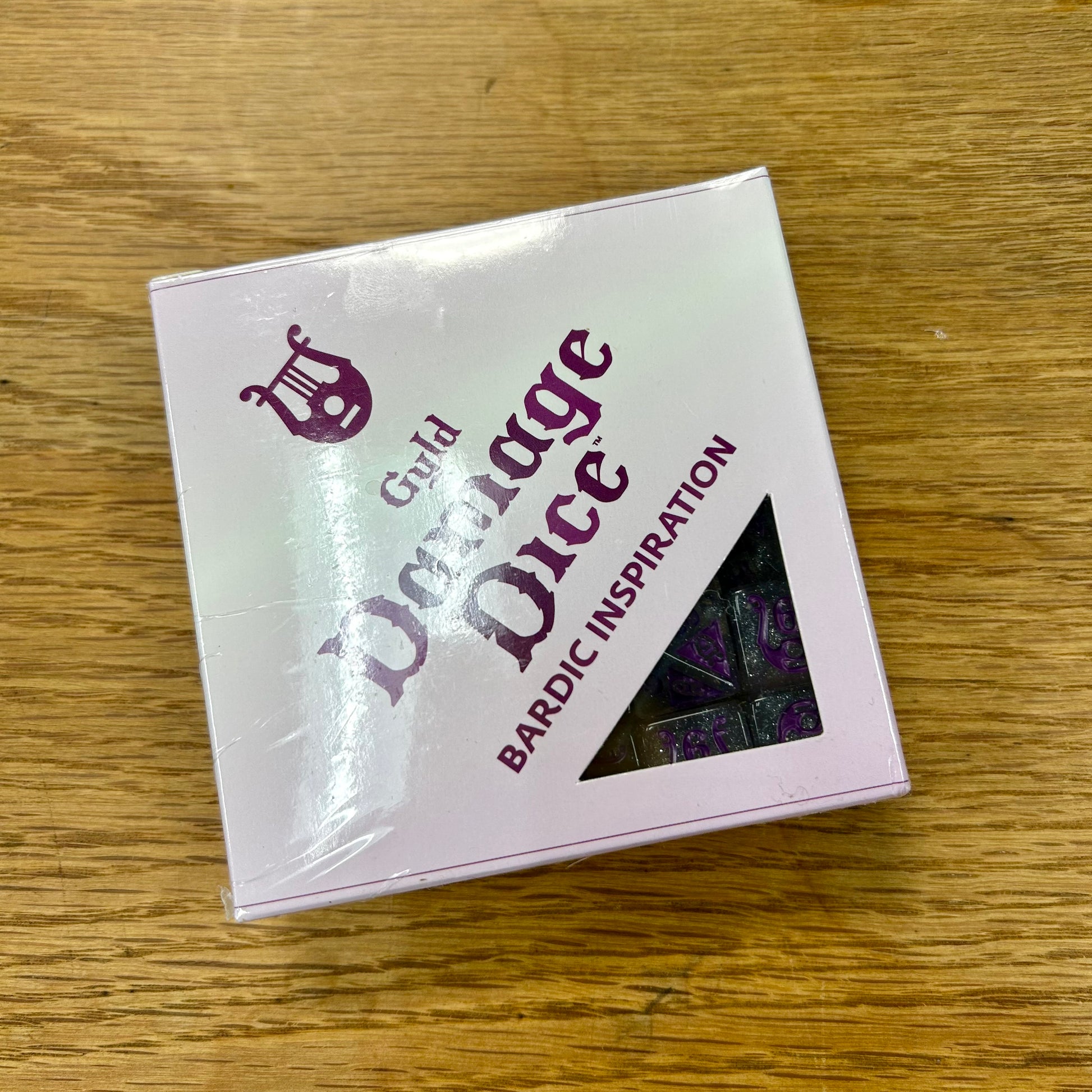 Bardic Inspiration Dice include 5 of each die size needed for Bardic Inspiration! Pass them out for your inspired companions to roll, and track your uses!