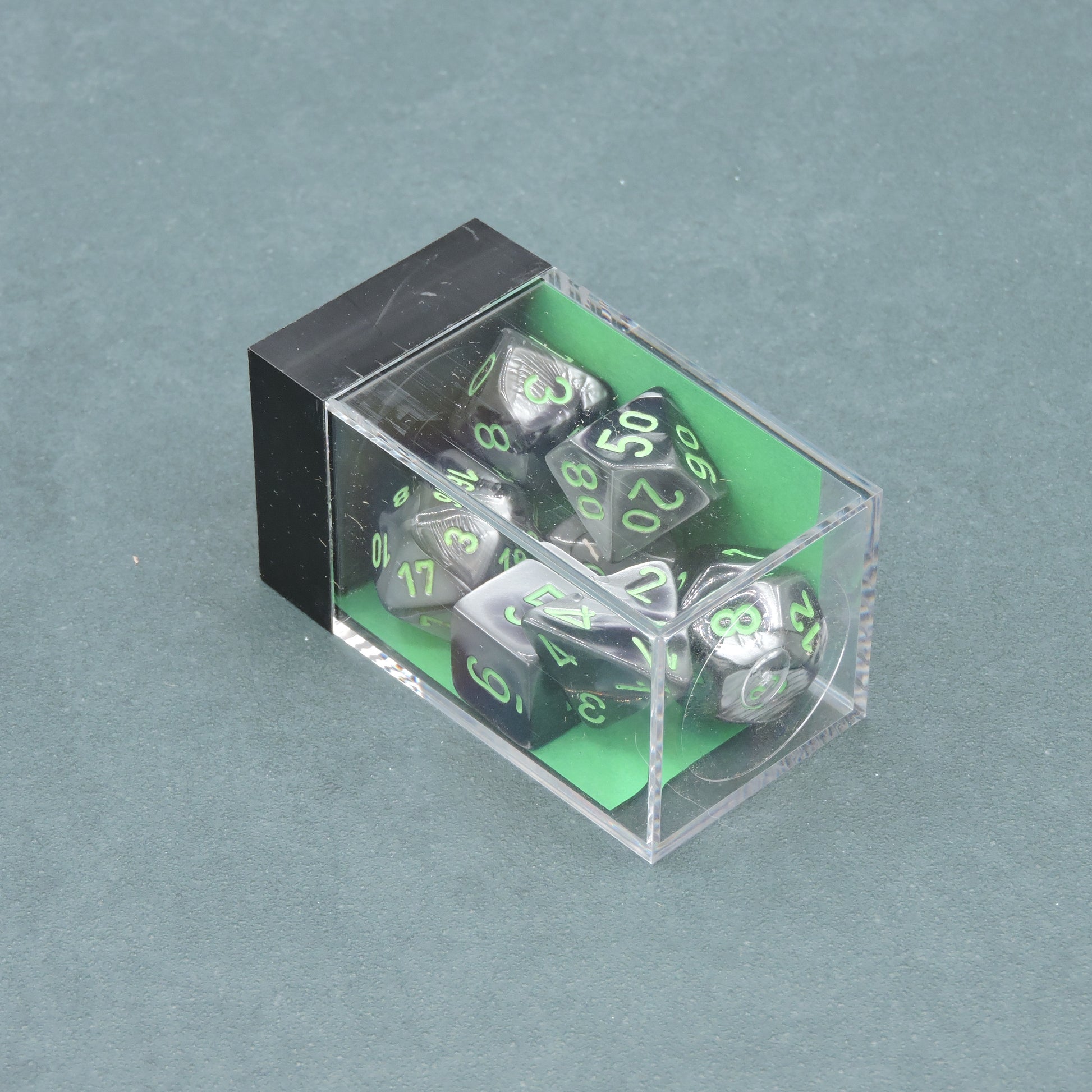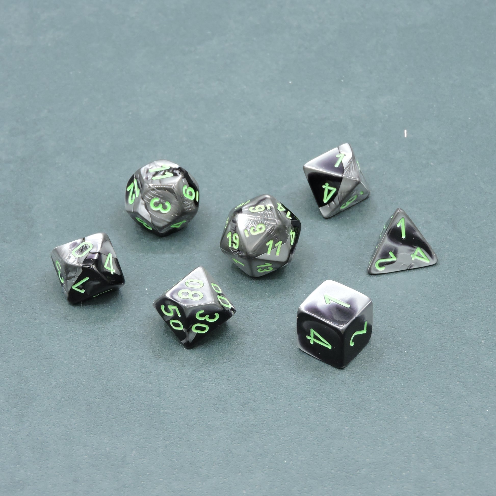 Black-Grey w/ green Gemini Polyhedral 7-die Set