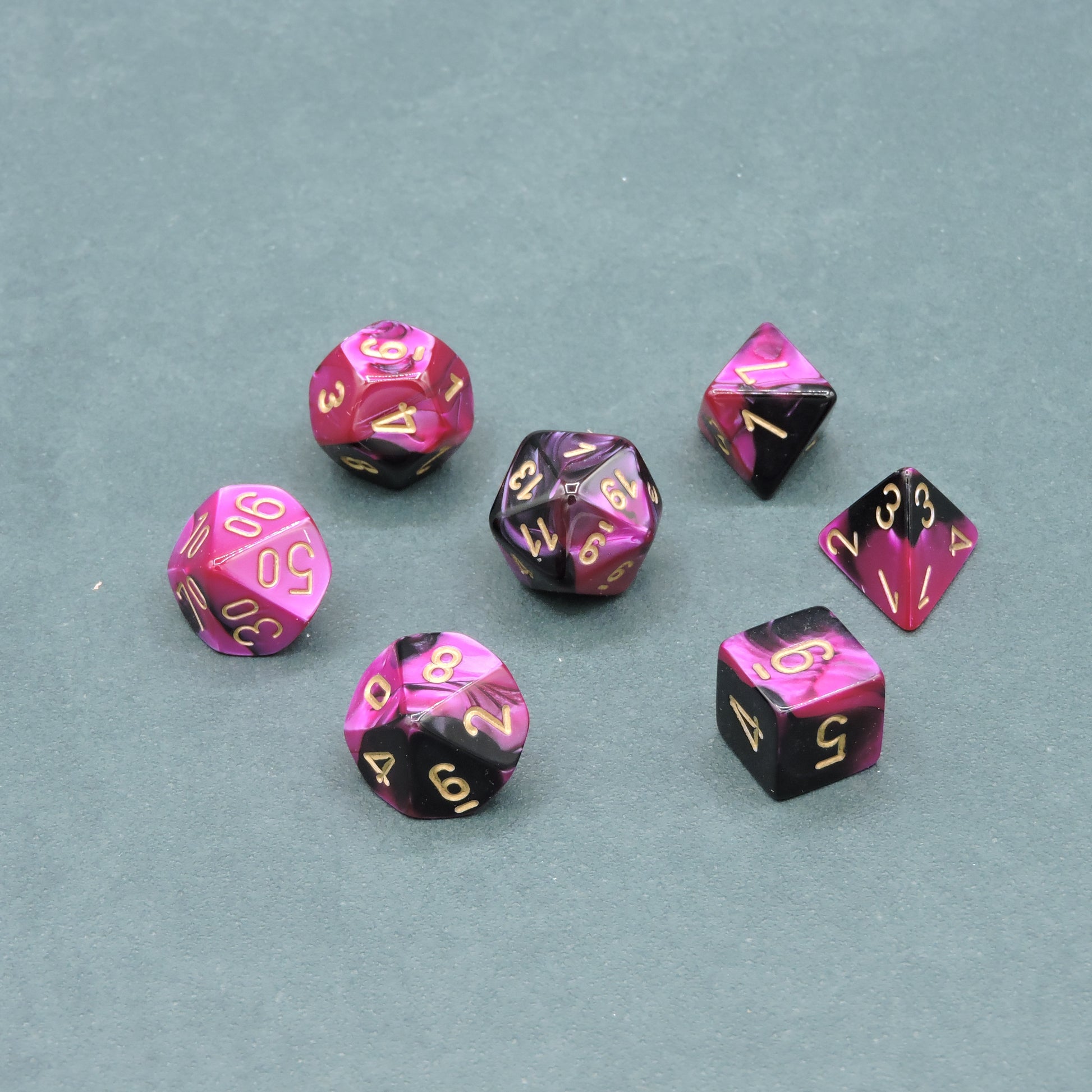 Black-Purple w/ gold Gemini Polyhedral 7-die Set