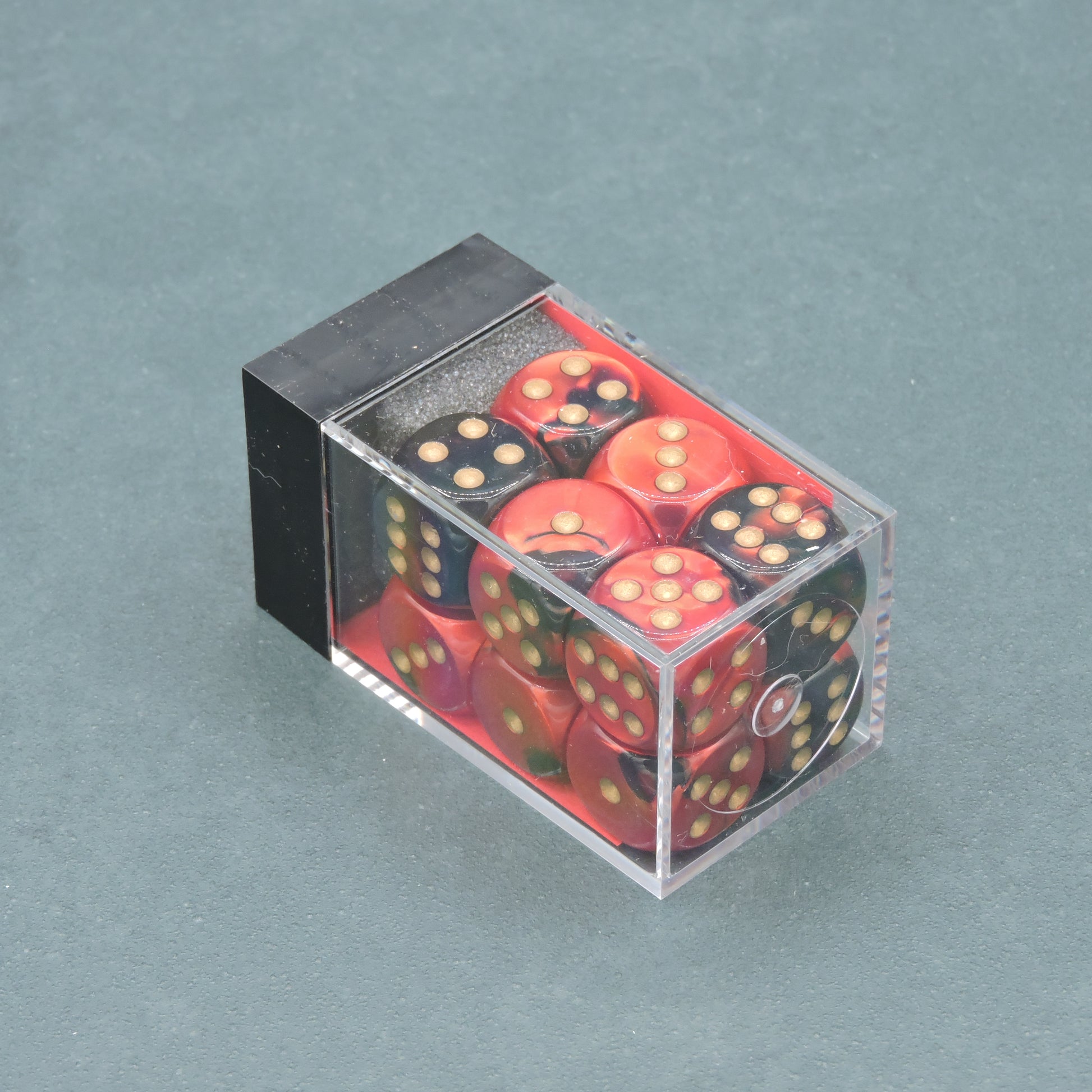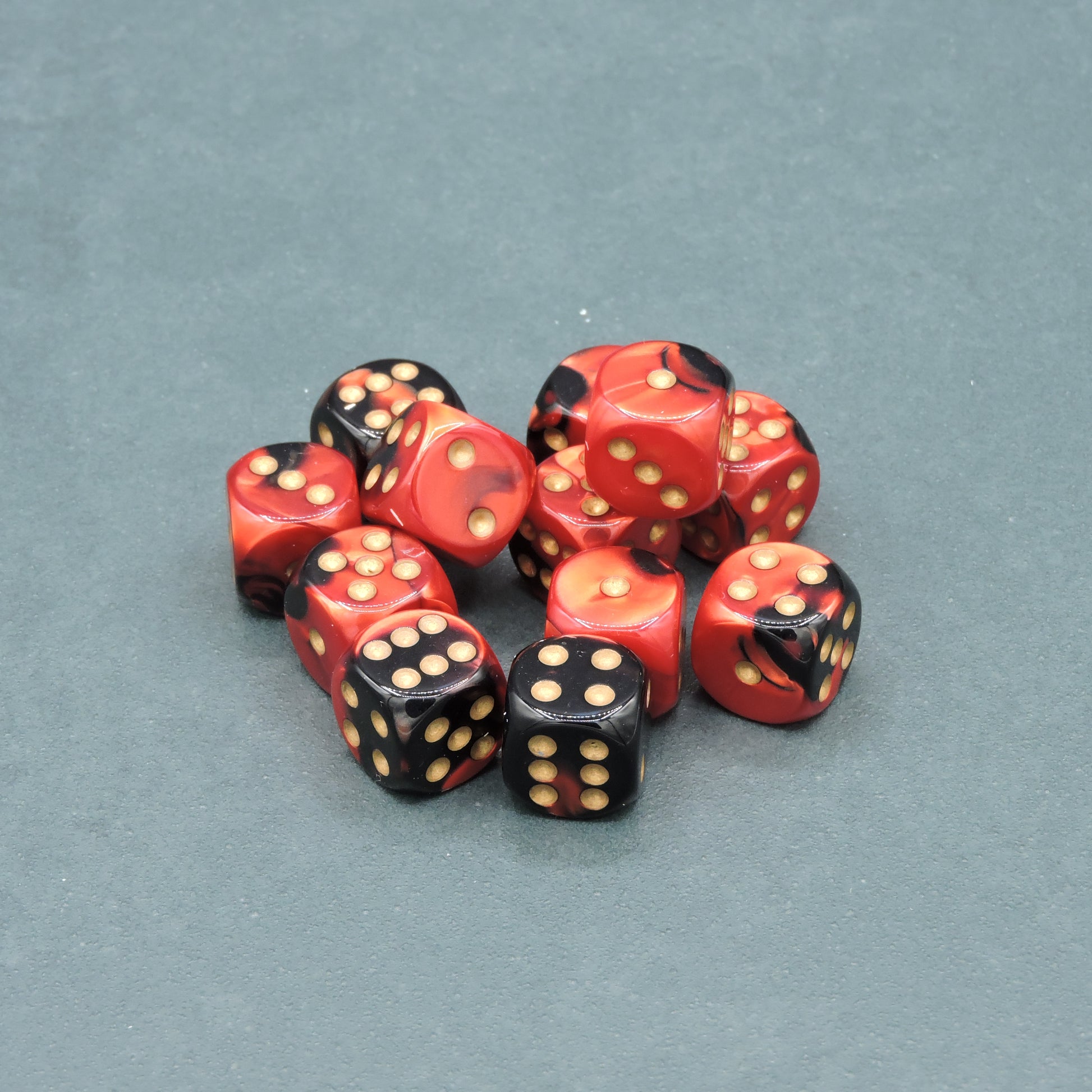 Black-Red w/ gold Gemini 16mm d6 Dice Block (12 dice)