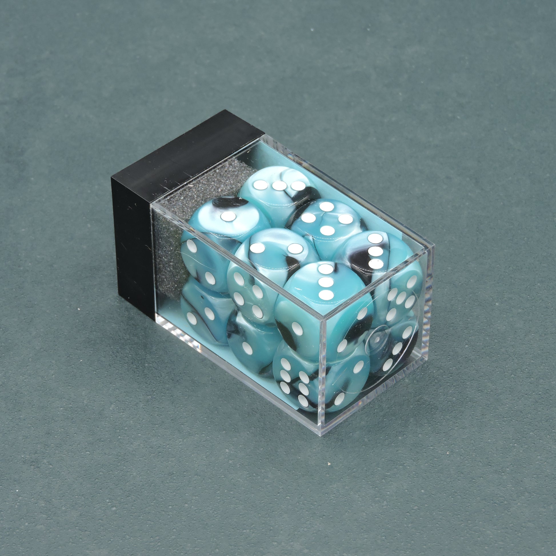 Black-Shell w/ white Gemini 16mm d6 Dice Block (12 dice)