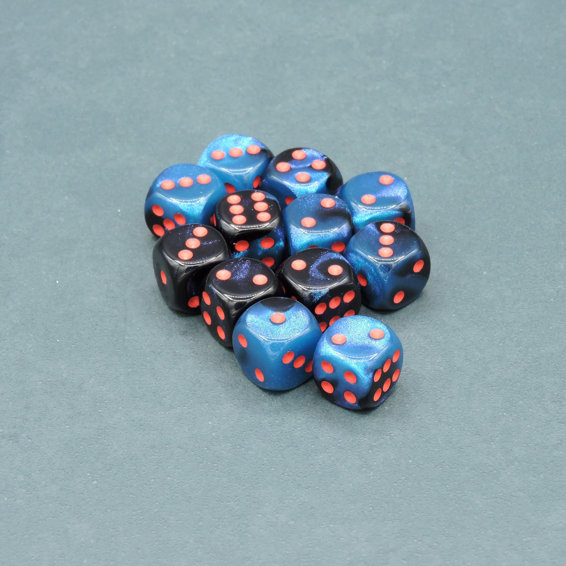 Black-Starlight w/ red Gemini 16mm d6 Dice Block (12 dice)