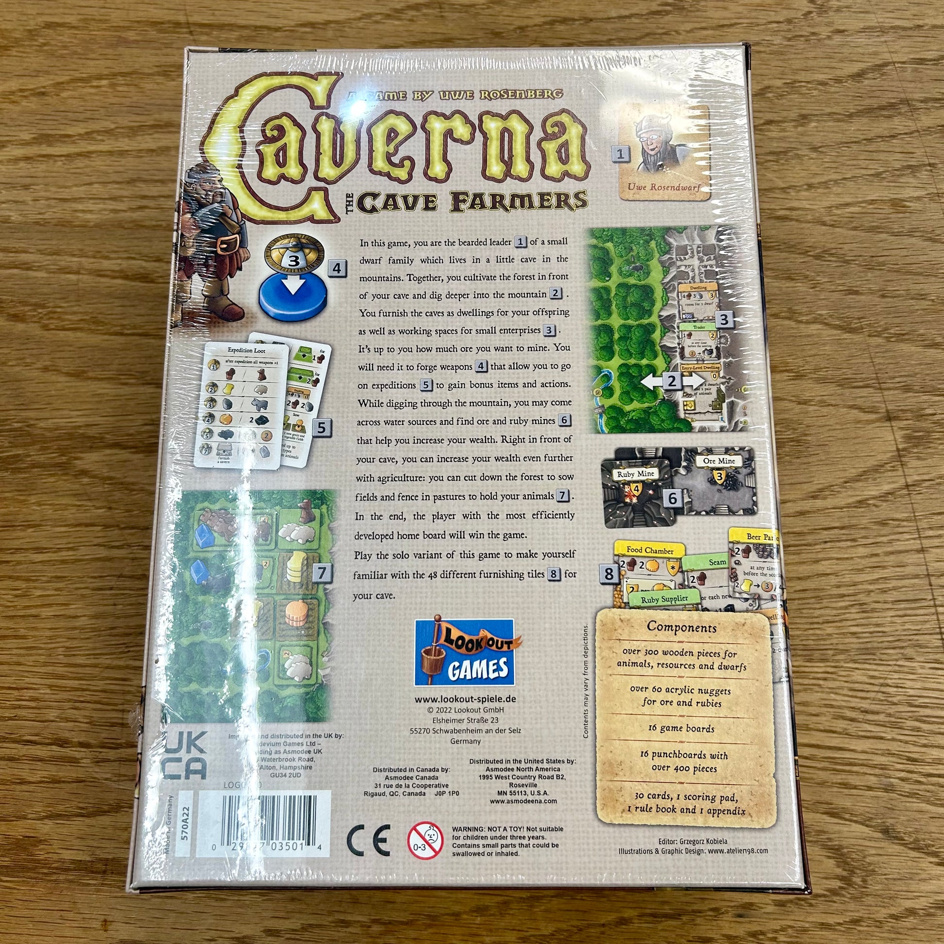 While digging through the mountains, you may come across water sources and find ore and ruby mines that help you increase your wealth. Right in front of your cave, you can increase your wealth even further with agriculture: you can cut down the forest to sow fields and fence in pastures to hold your animals. In the end, the player with the most efficiently developed home board will win the game.