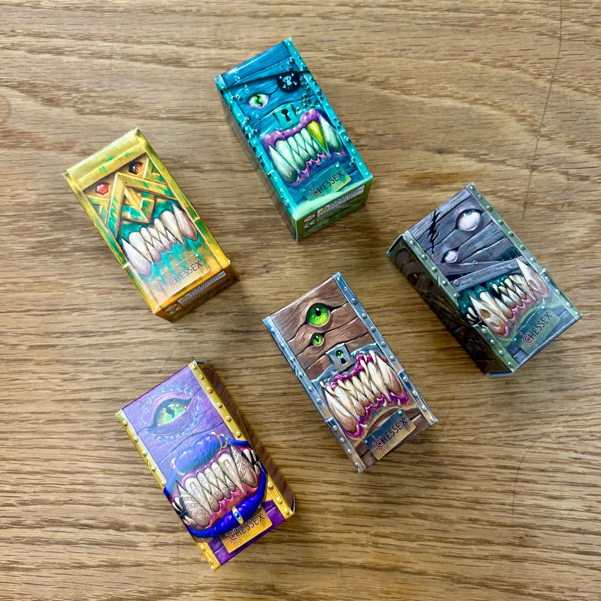 A blind box containing a single set of polyhedral dice from one of 32 possible styles that are unique to this series.