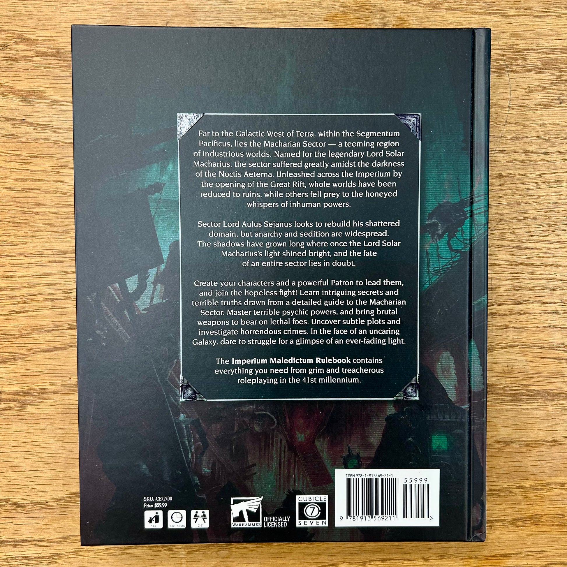 The Imperium Maledictum Rulebook contains everything you need from grim and treacherous roleplaying in the 41st millennium.