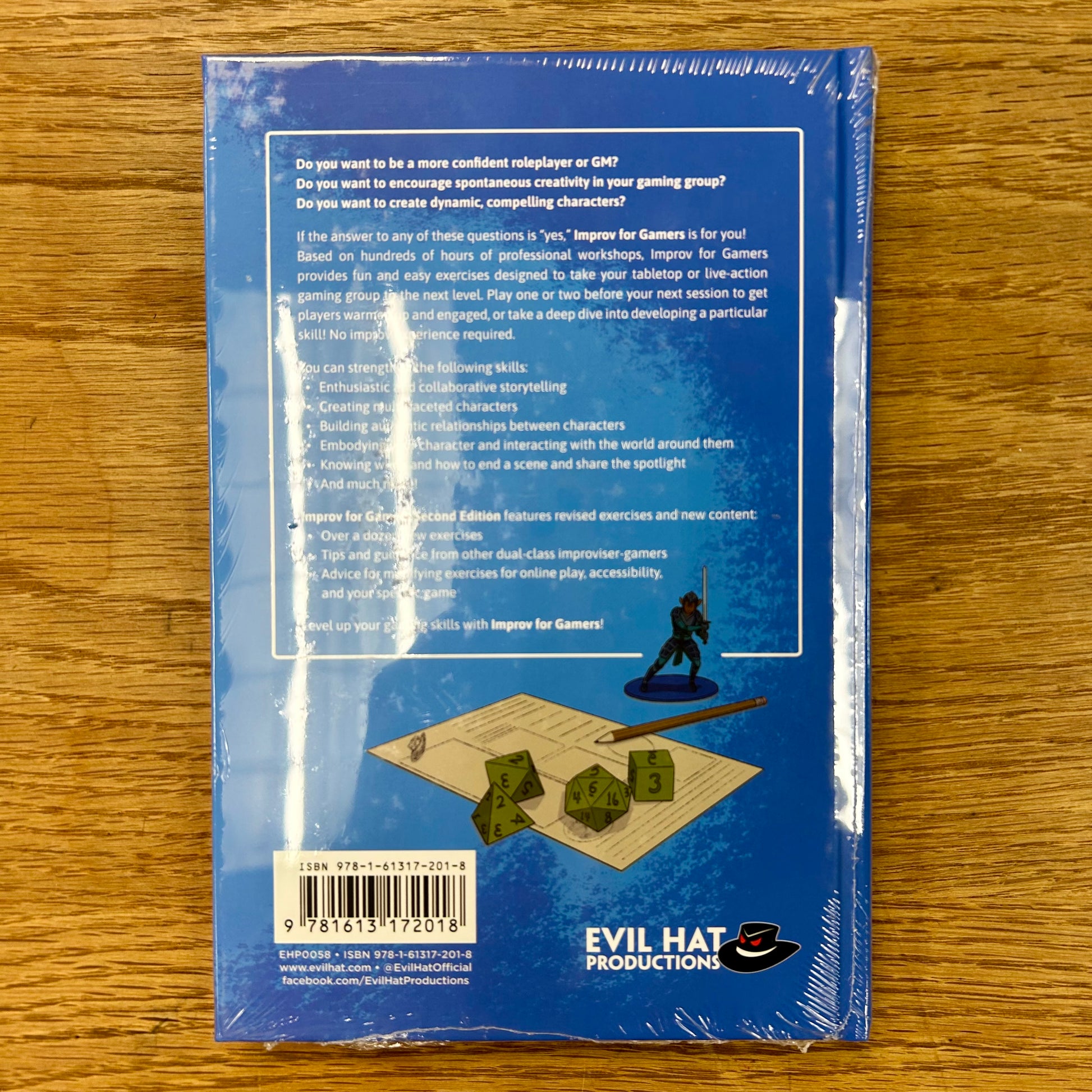 If the answer to any of these questions is “yes,” Improv for Gamers is for you! Based on hundreds of hours of professional workshops, Improv for Gamers provides fun and easy exercises designed to take your tabletop or live-action gaming group to the next level. Play one or two before your next session to get players warmed up and engaged, or take a deep dive into developing a particular skill! No improv experience required.