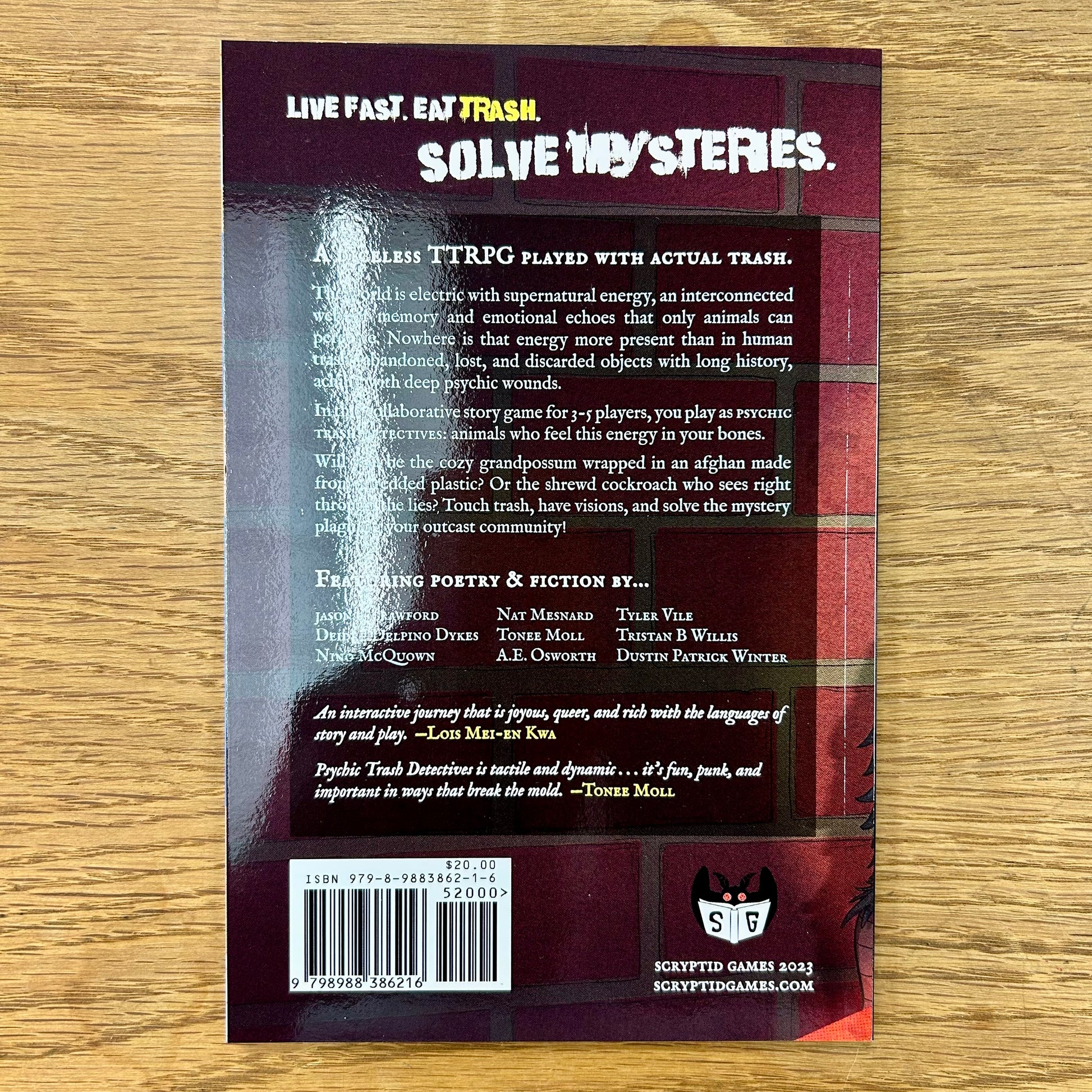 Will you be the cozy grandpossum wrapped in an afghan made from shredded plastic? Or the shrewd cockroach who sees right through the lies? Touch trash, have visions, and solve the mystery plaguing your outcast community!