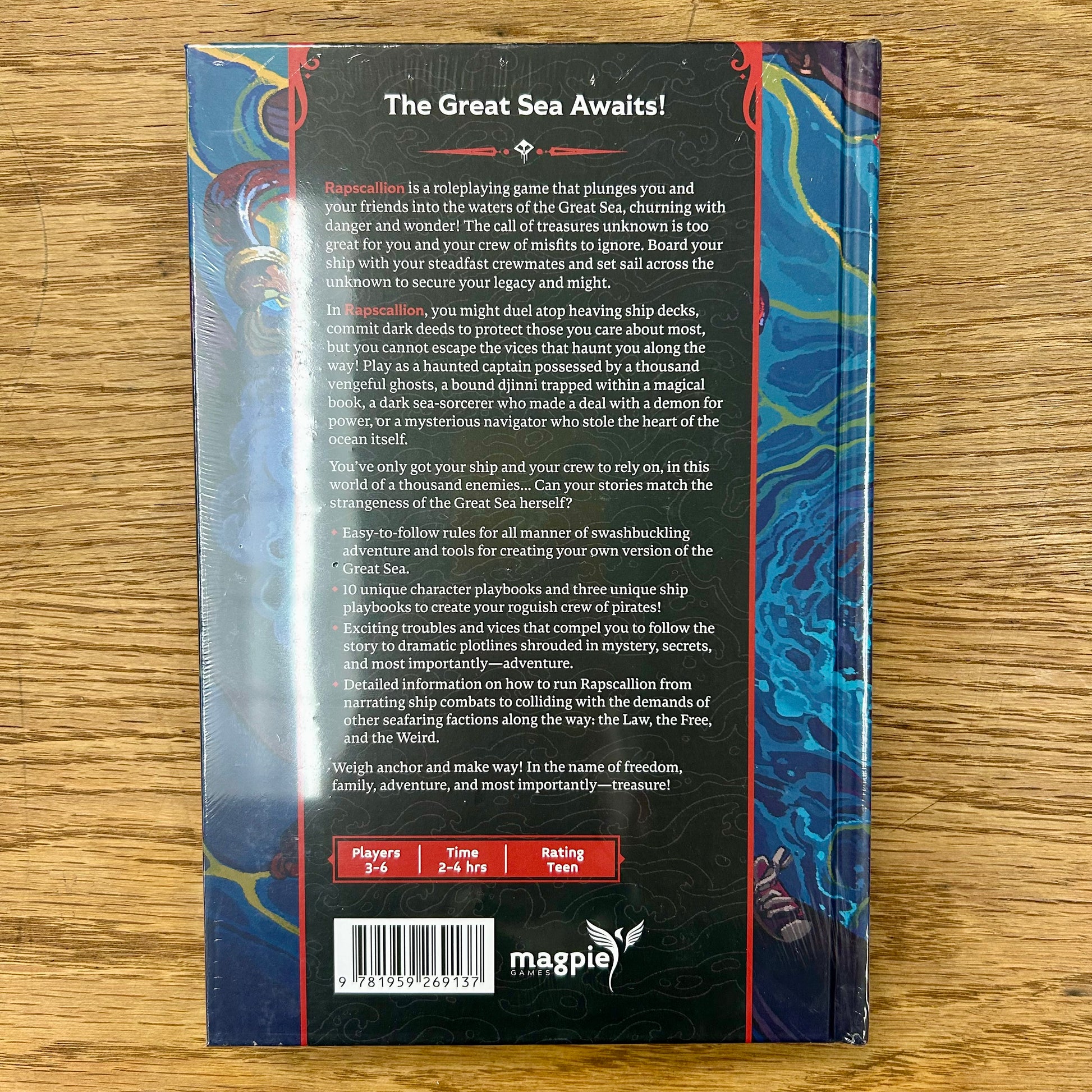 Rapscallion is a roleplaying game that plunges you and your friends into the waters of the Great Sea, churning with danger and wonder! The call of treasures unknown is too great for you and your crew of misfits to ignore. Board your ship with your steadfast crewmates and set sail across the unknown to secure your legacy and might.
