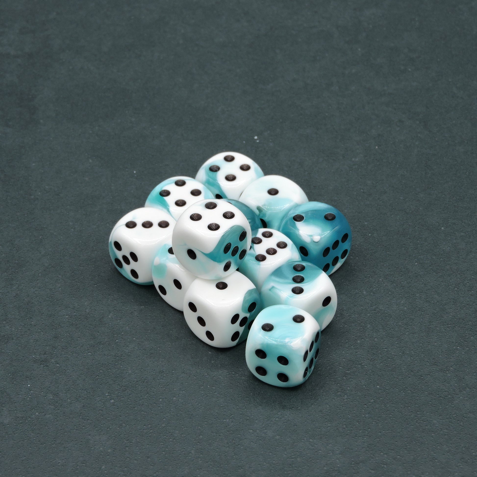 Teal-White w/ black Gemini 16mm d6 Dice Block (12 dice)