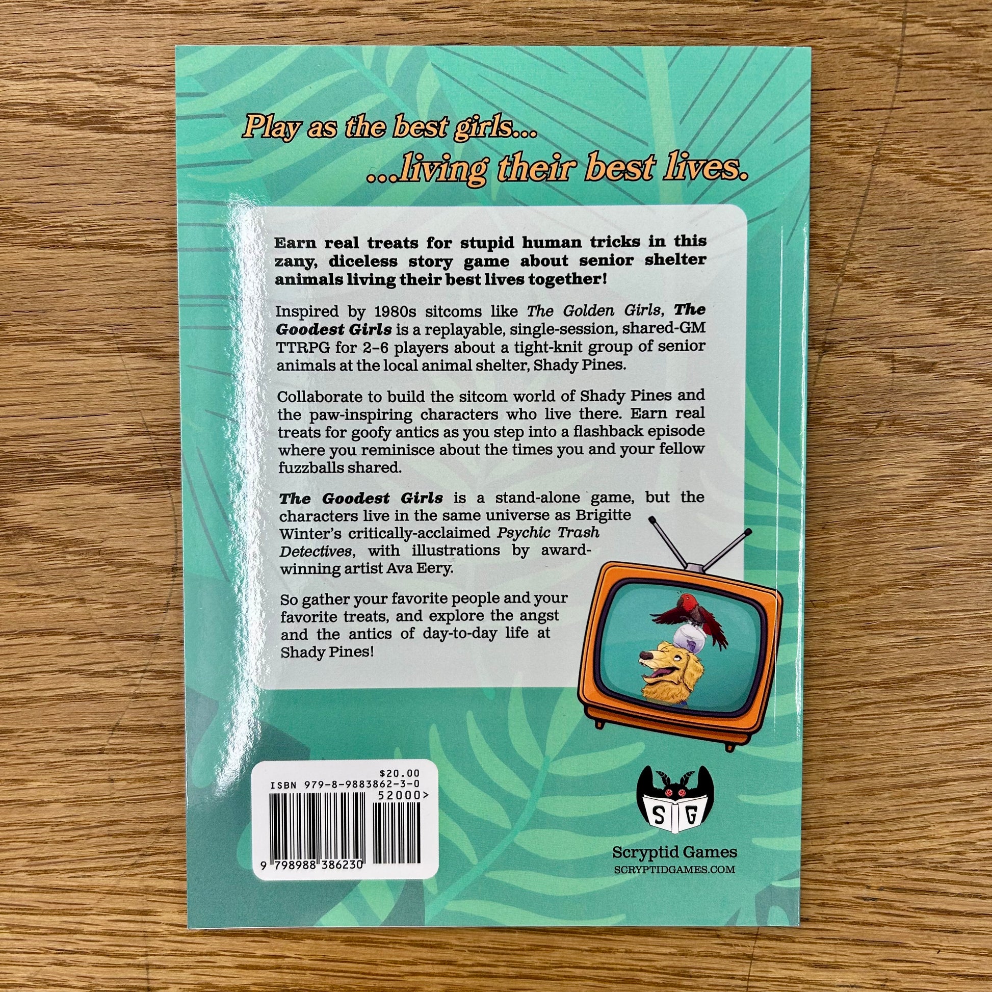 Inspired by 1980s sitcoms like The Golden Girls, The Goodest Girls is a replayable, single-session, shared-GM TTRPG for 2-6 players about a tight-knit group of senior animals at the local animal shelter, Shady Pines.