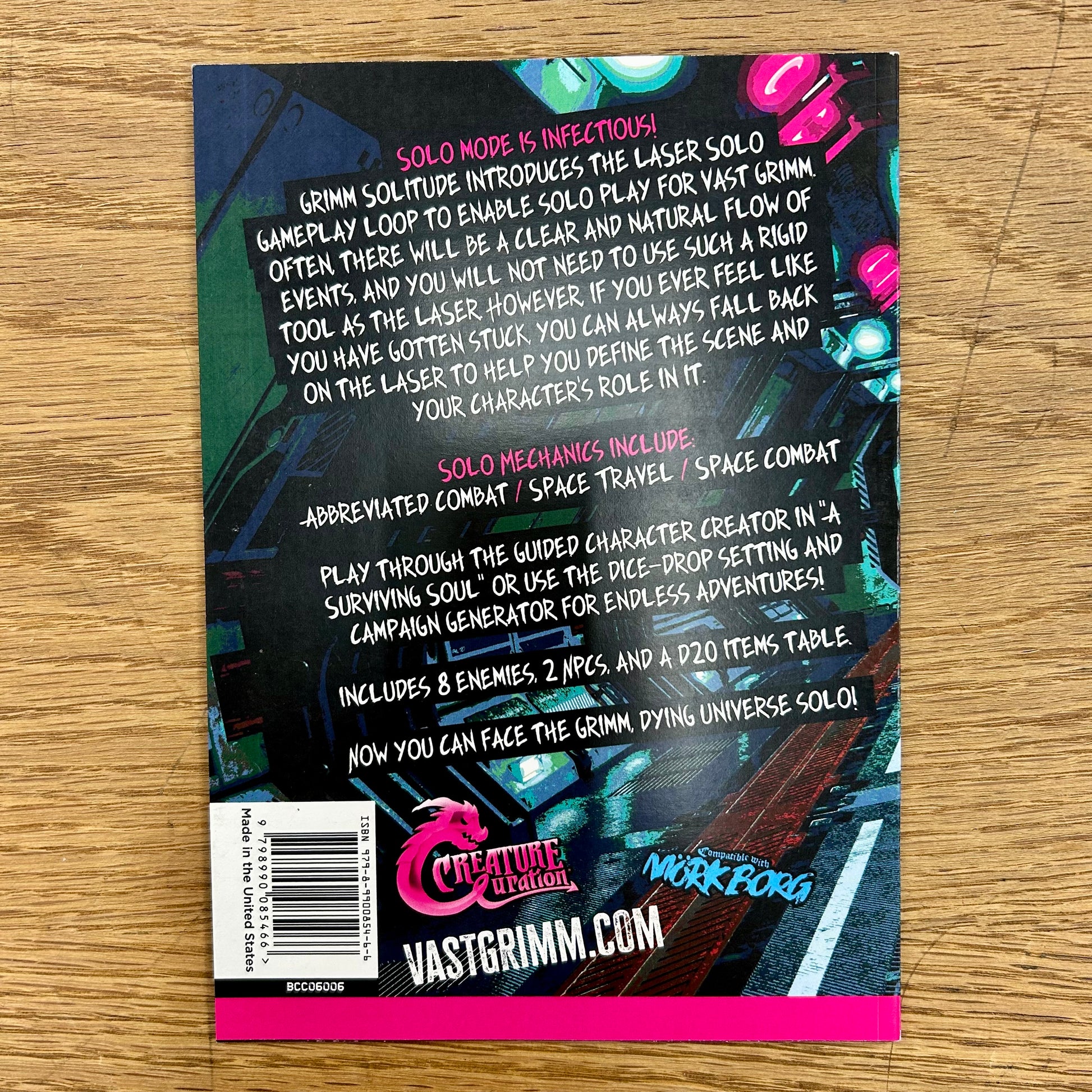Grimm Solitude introduces the laser solo gameplay loop to enable solo play for Vast Grimm. Often, there will be a clear and natural flow of events, and you will not need to use such a rigid tool as the laser. However, if you ever feel like you have gotten stuck, you can always fall back on the laser to help you define the scene and your character’s role in it.